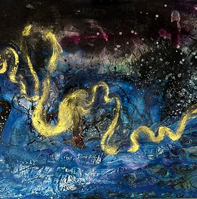 ink, acrylic paint, pencils, markers on paper, 12" x 18"