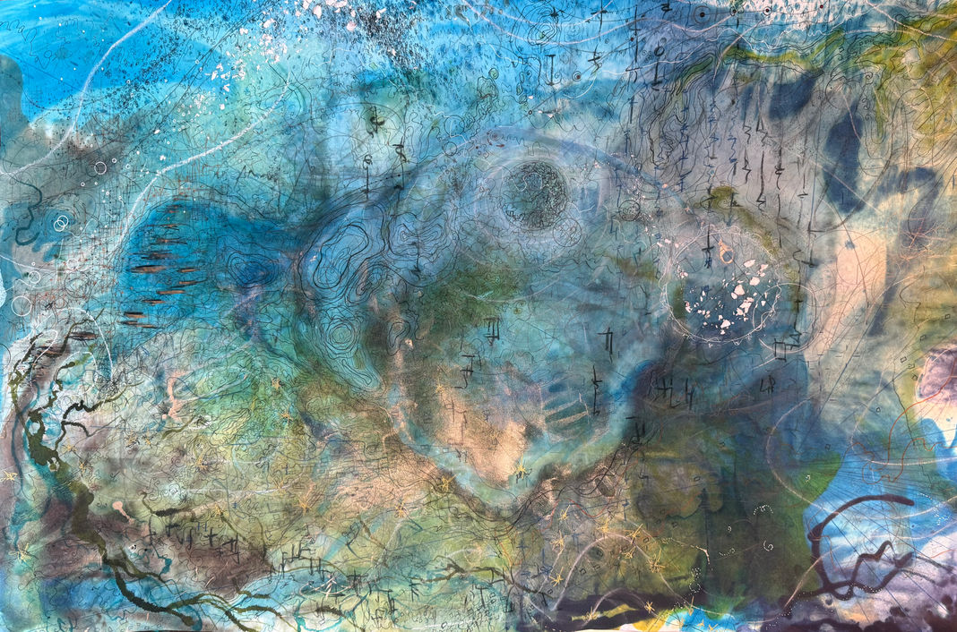 Dreamscape Unremembered, 2025, mixed media on paper, 35" x 40"