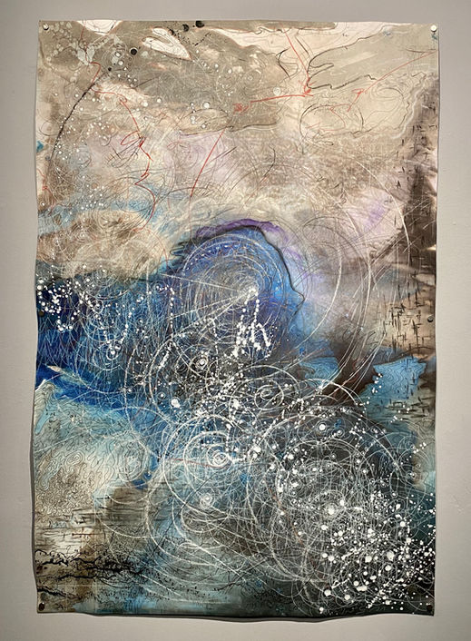 Escape Velocity, 2024, mixed media on paper, 42" x 46"